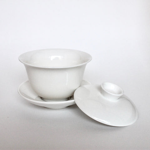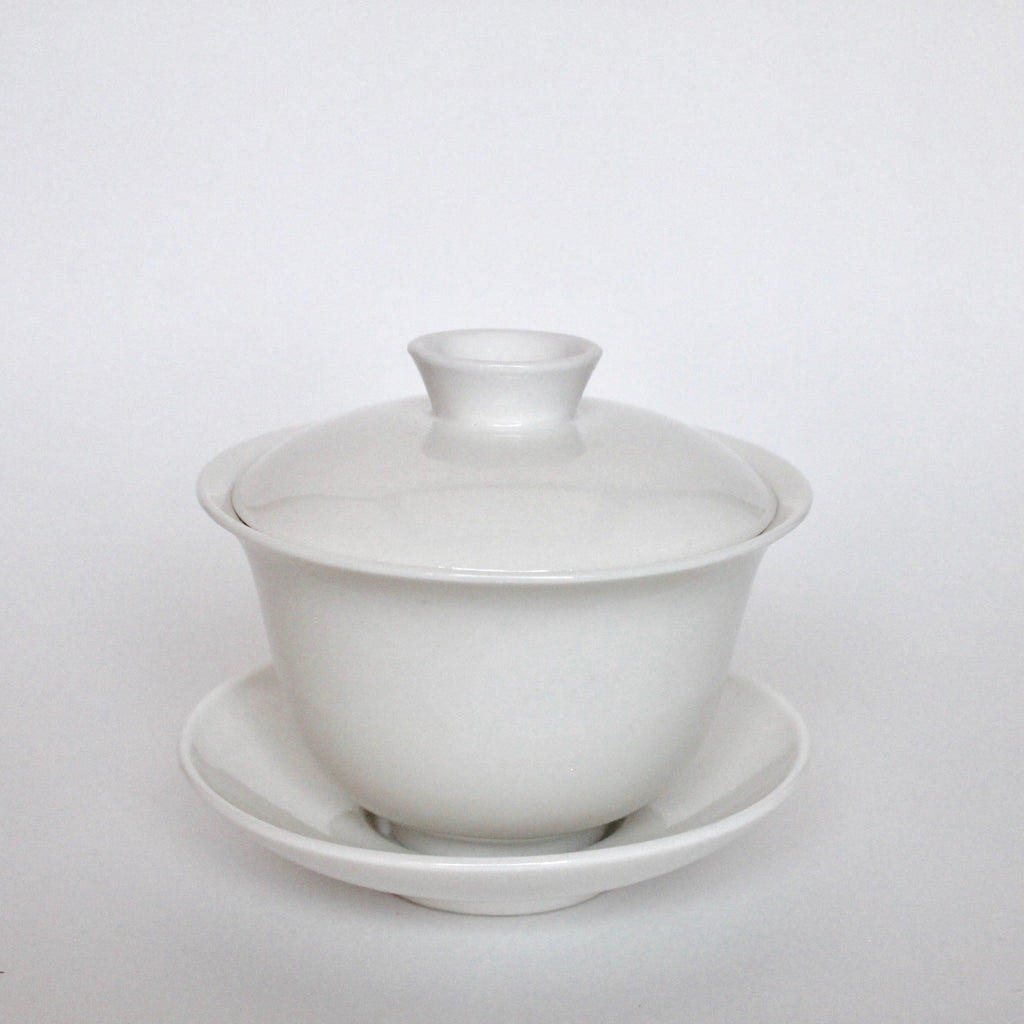 Voici un gaiwan (ou zhong) blanc, beau dans toute sa simplicité. Il vous permettra d'infuser efficacement n'importe quel thé chinois et taiwannais ou autres thés à feuilles entières de préférence. Il est définitivement notre outil d'infusion préféré au quotidien!