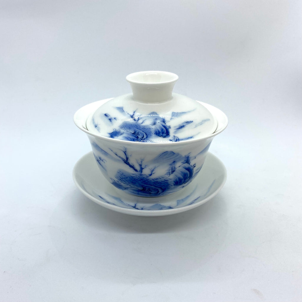 Voici un gaiwan (ou zhong) traditionnel, représentant un paysage traditionnel chinois d'une manière délicate et raffinée. Cet outil d'infusion vous permettra d'infuser efficacement n'importe quel thé chinois et taiwannais ou autres thés à feuilles entières de préférence.