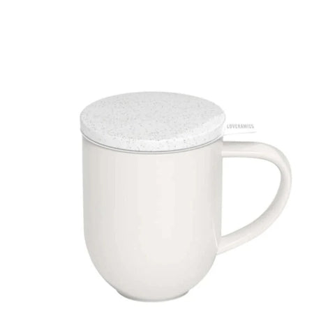 3 morceaux: Tasse en céramique de contenance 300ml, filtre en acier inoxydable et couvercle.