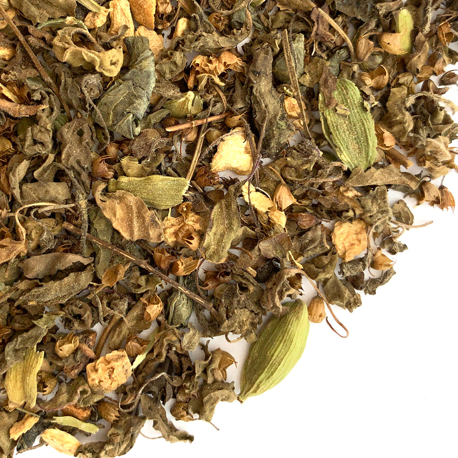Voici un mélange exclusif inspiré du traditionnel chai indien. Ici à base de thé vert, ce mélange inclus du tulsi, du gingembre, de la cardamome, de la cannelle et de la muscade. Stimulant, réconfortant et riche en anti-oxydants!