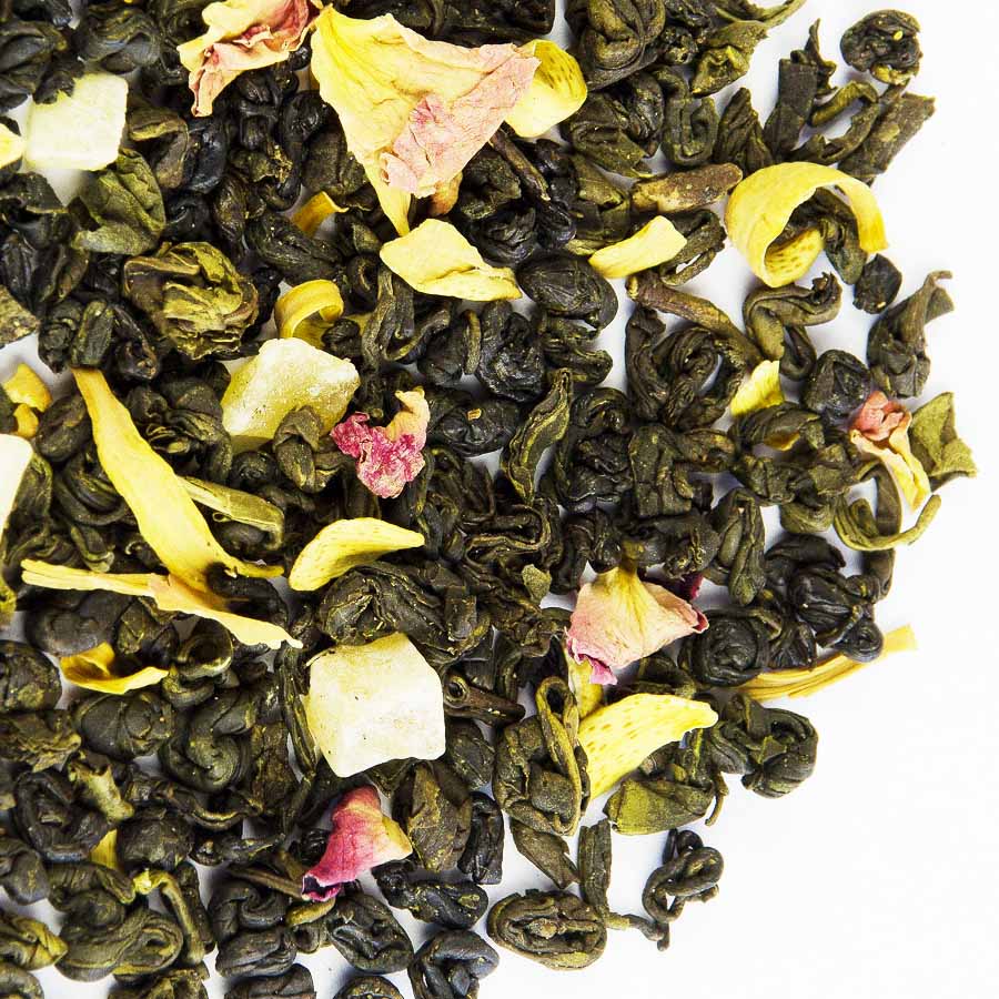 Pour les amateurs de fruits exotiques, voici un succulent mélange de thé vert chinois, agrémenté de morceaux de mangues, d’ananas ainsi que de la délicieuse saveur de fruit de la passion. Coup de cœur pour la saison chaude, ce thé saura plaire chaud comme froid!